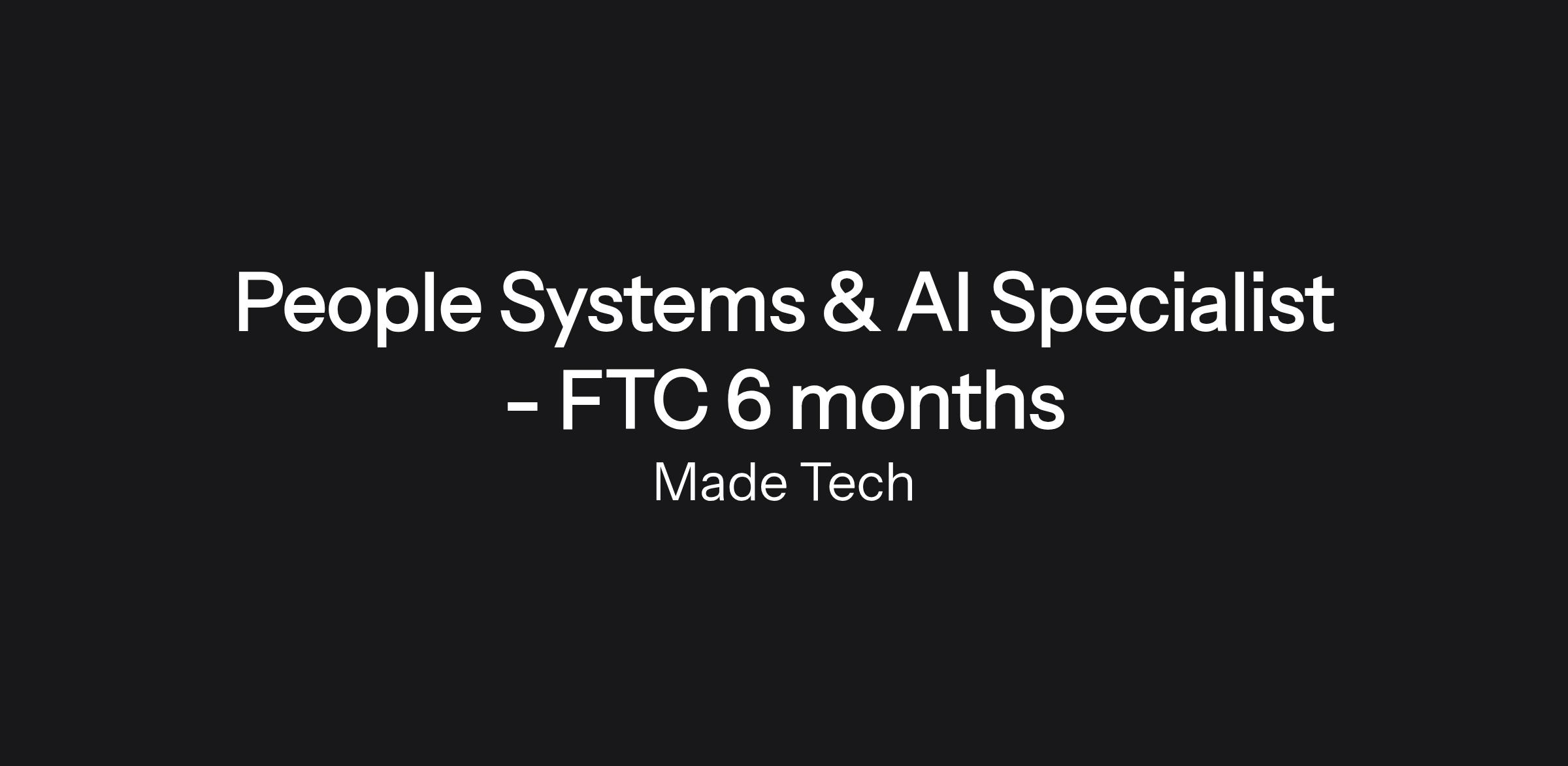 Made Tech is a technology company, and our People function should lead by example. As our People Systems & AI Specialist, you are the technical engine behind our "Powerhouse" goal. This is a dedicated, fixed-term role designed to provide the impetus and expertise needed to modernise our tech stack and enable future maintenance to be as self-sufficient and require minimal manual input as is possible.